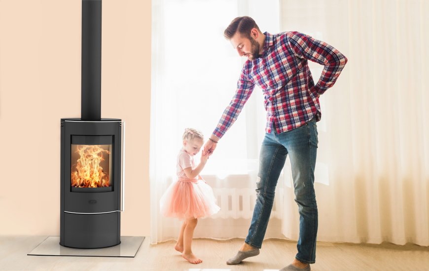 Der Fireplace Elite Angerona Glas Kaminofen (Modell K6011) ist ein schlank gestalteter Holzofen mit eleganter Glas‑Topplatte und großer Panoramasichtscheibe für gemütliche Feueroptik.